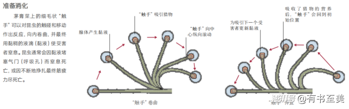 比如,這張圖就演示了好望角茅膏菜如何通過(guò)葉片來(lái)捕捉昆蟲(chóng)的。