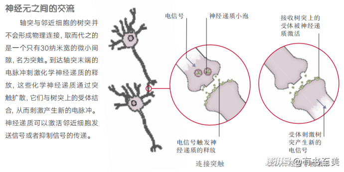 這張圖展示了神經(jīng)元之間是如何通過(guò)化學(xué)神經(jīng)遞質(zhì)進(jìn)行交流的。