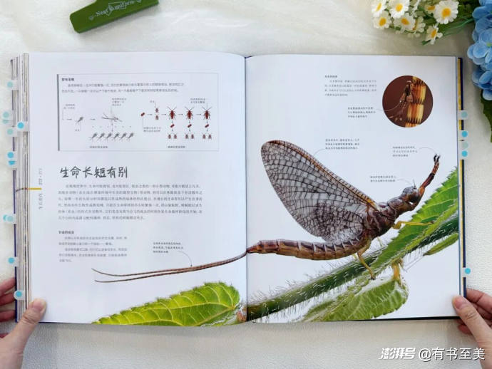 書(shū)里用清晰的影像帶我們見(jiàn)證生命的變化,往往會(huì)經(jīng)歷細(xì)胞分裂、胚胎發(fā)育、蟲(chóng)卵孵化等過(guò)程,生命周期也有長(zhǎng)有短。