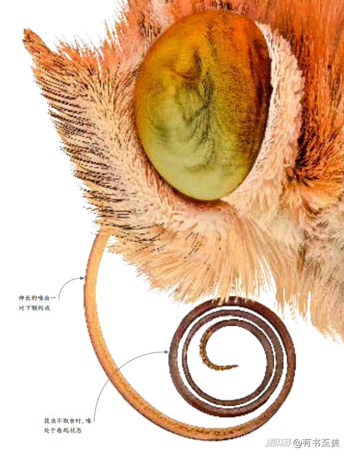 比如各種昆蟲(chóng)的口器,也就是嘴巴。我們可以看到小 紅蛺蝶的喙就像一根長(zhǎng)長(zhǎng)的“吸管”,用的時(shí)候伸直,不用的時(shí)候就卷起來(lái)。