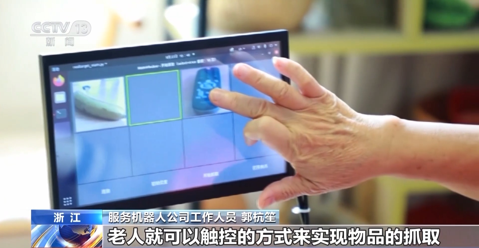 服務(wù)機(jī)器人公司工作人員 郭杭笙:前前后后進(jìn)行了11次的迭代升級(jí),我們還搭配了屏幕,老人就可以用觸控的方式來實(shí)現(xiàn)對(duì)物品的抓取。