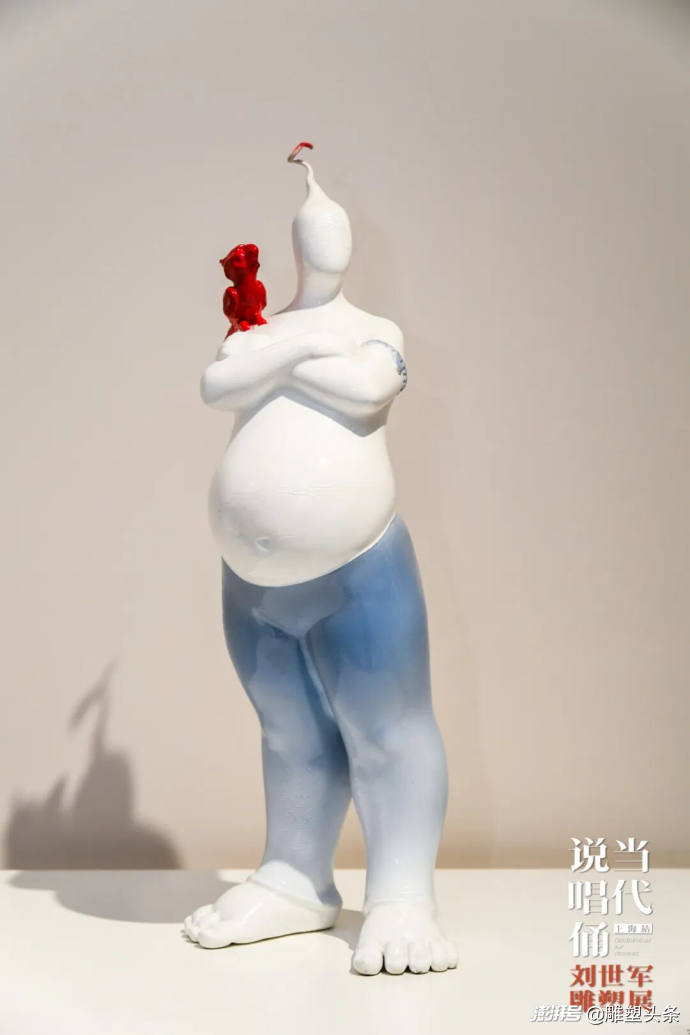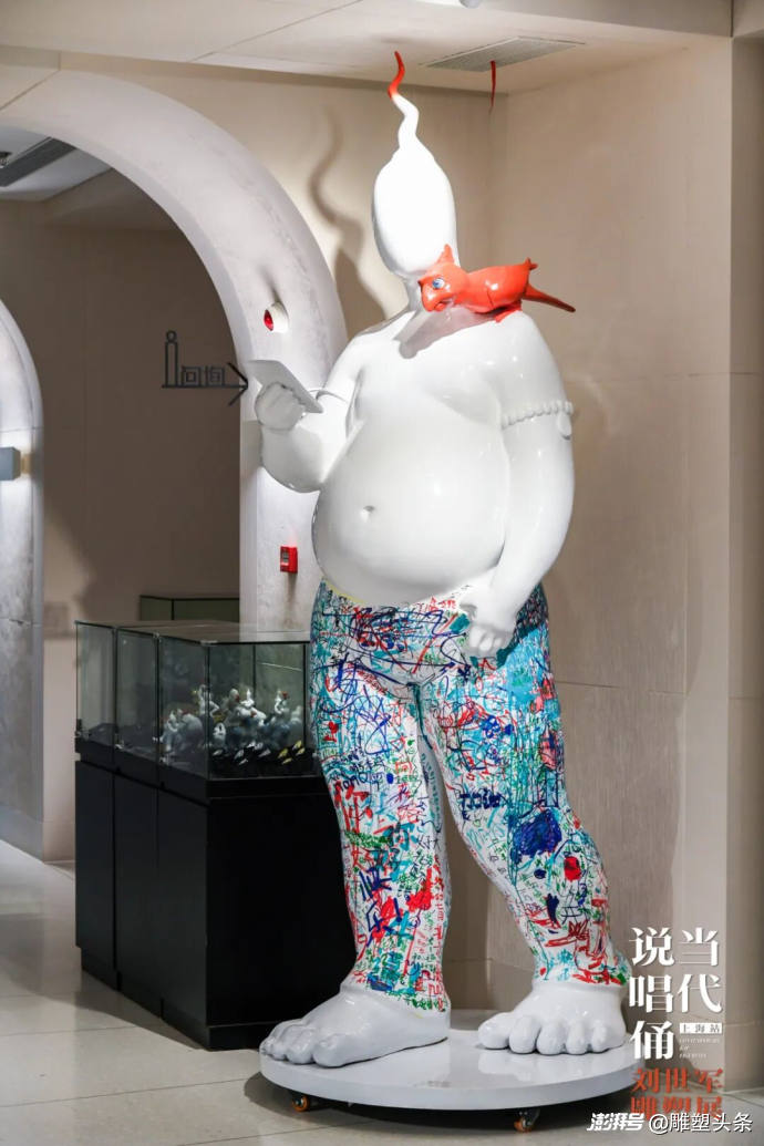 劉世軍從2008年開(kāi)始創(chuàng)作、持續(xù)到2020年的系列作品《當(dāng)代說(shuō)唱俑》,構(gòu)成了他藝術(shù)語(yǔ)言的特質(zhì)和風(fēng)貌,他用時(shí)間沉淀了對(duì)生活的闡釋,也解讀了生活的百態(tài)和意味。這不是單一的雕塑造像,而是經(jīng)過(guò)長(zhǎng)年不斷的構(gòu)思,依次推進(jìn)對(duì)這一說(shuō)唱俑的立意深化。這個(gè)系列的說(shuō)唱俑反映了中國(guó)社會(huì)之變與豐富,劉世軍創(chuàng)造了一個(gè)符號(hào)形象,葫蘆娃的頭顱,夸張的身體,特別是那個(gè)紅色的鸚鵡極富象征意義,給人無(wú)限的遐想。一種喜悅、一種積極、一種渴望天空飛翔的充沛感,是歷史刻度表上的一個(gè)永恒時(shí)光。