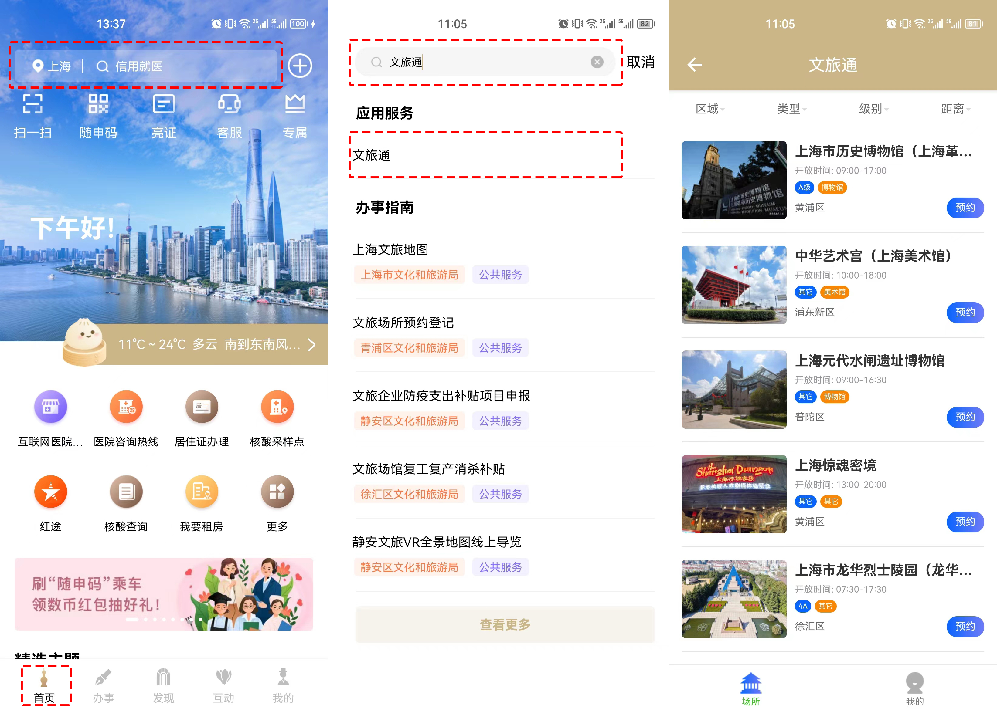 登錄“隨申辦市民云”APP→首頁搜索框中輸入關(guān)鍵字“文旅通”→點(diǎn)擊“文旅通”進(jìn)入服務(wù)頁面