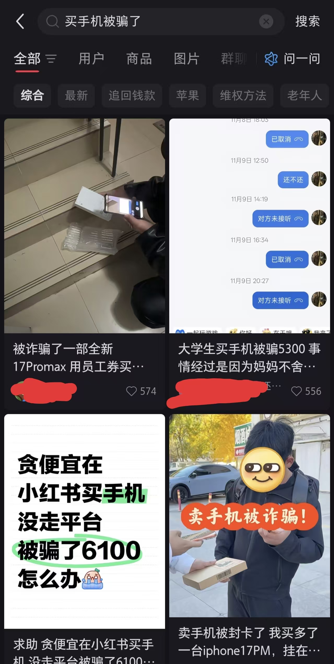 數(shù)碼科技產(chǎn)品,由于較高的客單價(jià),也就成了「最佳」的網(wǎng)絡(luò)詐騙商品類別了。在小紅書搜索諸如「買手機(jī)被騙了」之類的關(guān)鍵詞,有大量鮮活案例,每天都在上演。