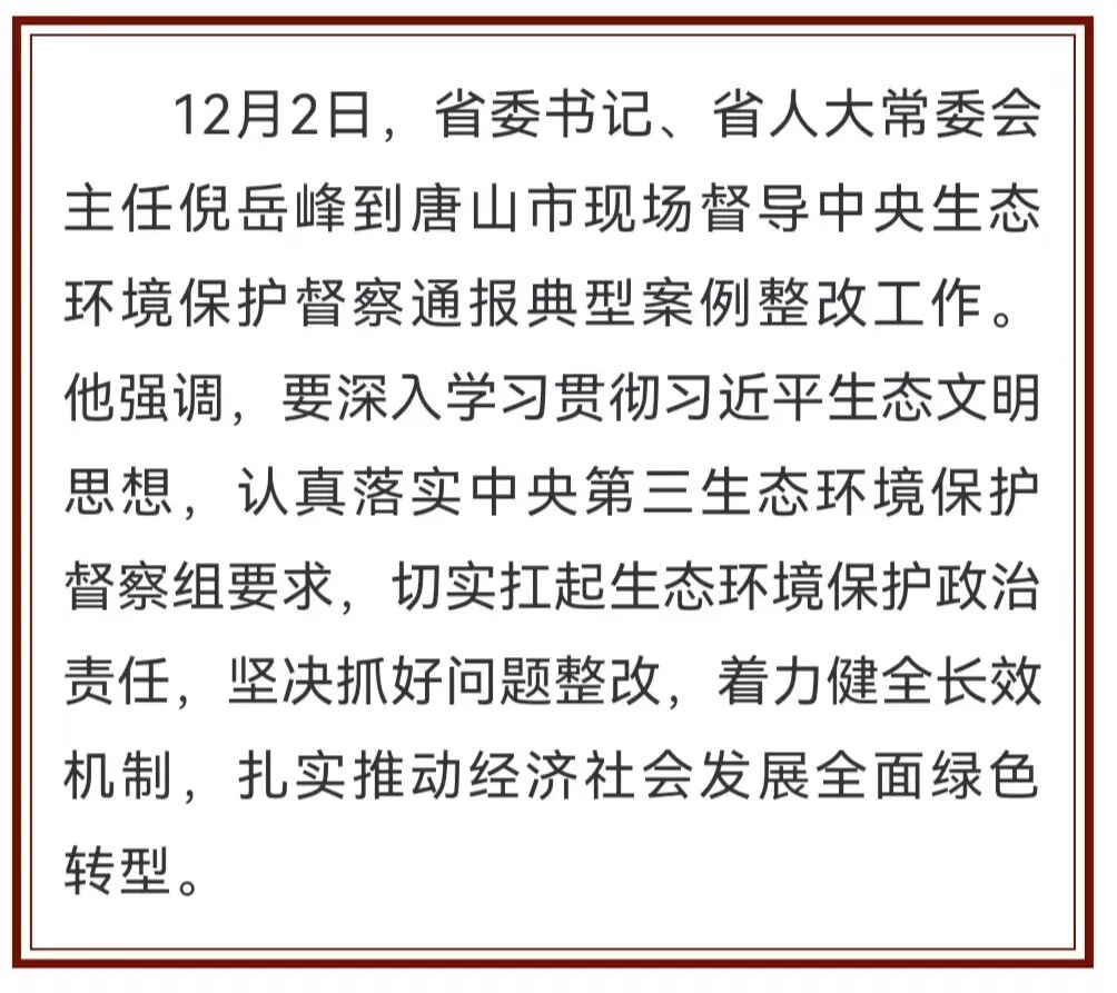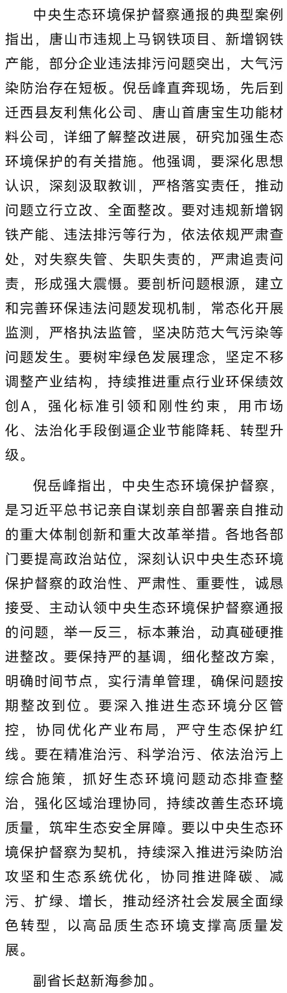 倪岳峰到唐山市現(xiàn)場督導(dǎo)中央生態(tài)環(huán)境保護督察通報典型案例整改工作