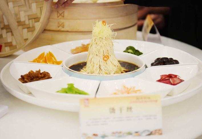 文思豆腐羹、燙干絲、揚(yáng)州炒飯、八寶葫蘆鴨、清燉獅子頭、大燒馬鞍橋、黃玨老鵝、裔家牛肉、三套鴨、郭村羊肉、小紀(jì)熬面、樊川小肚、大橋燒河豚、嘶馬拉豆腐、高郵大蝦、岔鎮(zhèn)老鵝、大儀牛肉……在活動(dòng)現(xiàn)場(chǎng),六個(gè)縣(市、區(qū))組建的專屬展示交流團(tuán)隊(duì)各展所長(zhǎng),帶來(lái)兼具傳統(tǒng)底蘊(yùn)與創(chuàng)新活力的地標(biāo)美食。