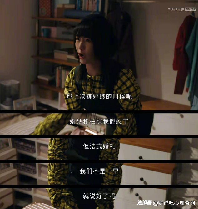 但是面臨結婚,這些情緒再也繃不住,控制不住地煩躁心慌,那些問題也避無可避了。