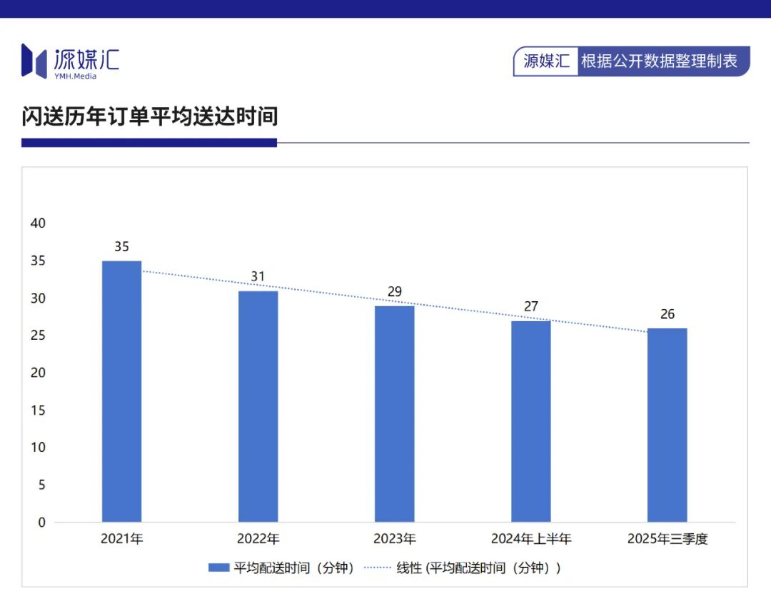 其實,閃送的運營效率進一步提升的空間已經(jīng)較為有限,相比2024年上半年,2025年三季度平均配送時間僅減少了1分鐘。