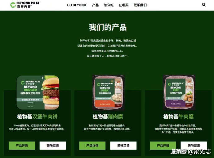 2020年4月,Beyond Meat通過與星巴克中國合作正式進(jìn)入內(nèi)地市場,將植物牛肉做成意面、千層面等新品餐食。隨后又先后與肯德基、必勝客、金鼎軒等中西式連鎖餐飲合作,把植物牛肉、植物豬肉做成漢堡、卷餅、餃子等產(chǎn)品。