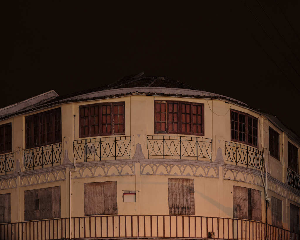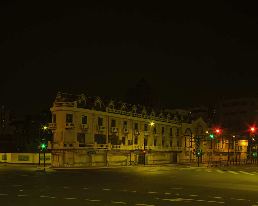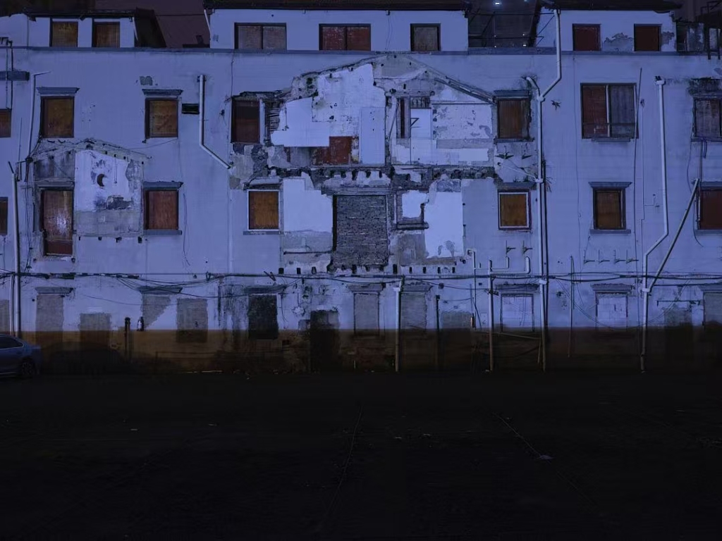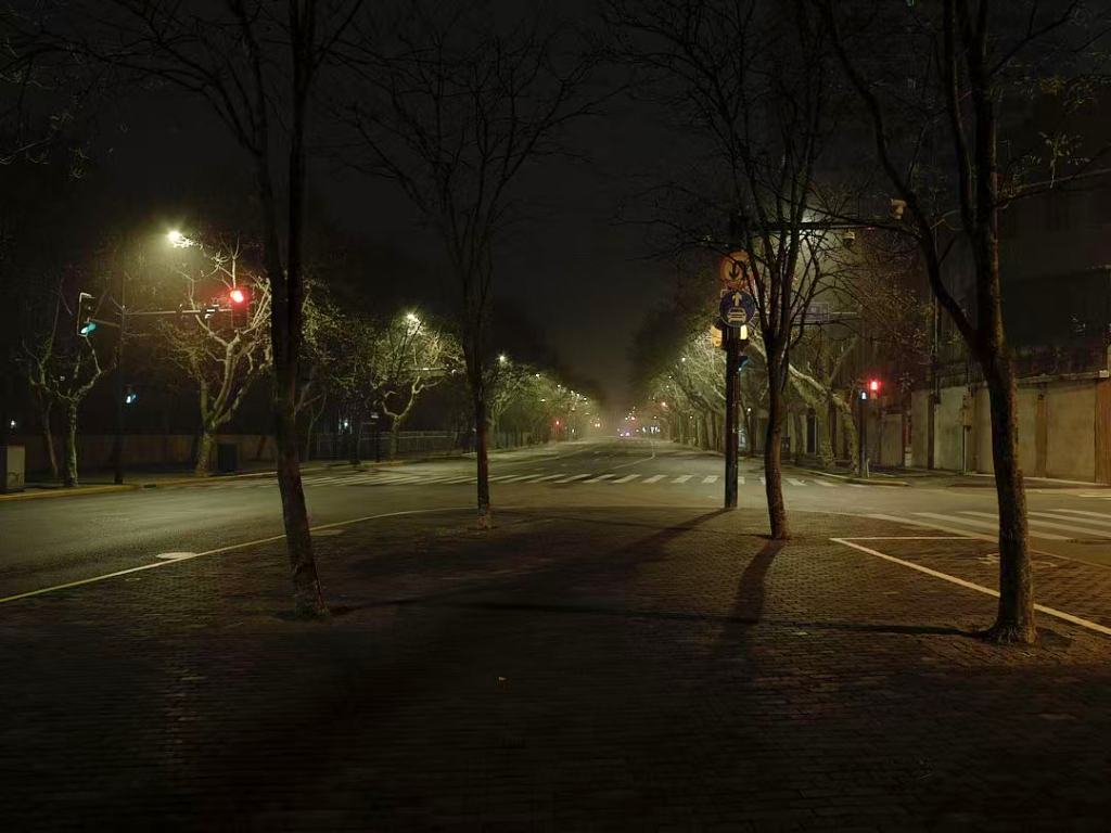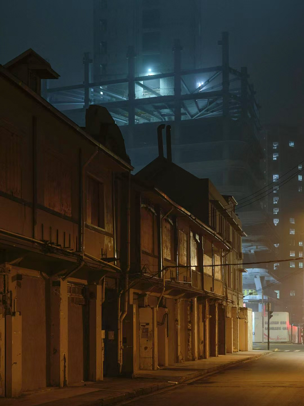 直到2020年春,為了避開人流,我把城市徒步的愛好由白天改成了深夜出走,每次行走路線都是隨機的,一次走進老南市區(qū)的動遷板塊,眼前景象讓我大為震驚,那里已完成了大面積的動遷,居民搬空了,深夜空蕩蕩的街巷兩旁,高低錯落的舊房子整齊安靜地站立著一直延伸到視線的盡頭,它們雖然都被封窗堵門了,但因沿街的違建都被拆除,以往亂扔的生活用品也一掃而空,煙紙店、廣告牌、理不清頭緒的電線,擁擠、昏暗、繁雜、躁動統(tǒng)統(tǒng)消失了,歲月氤氳煙消云散。視線里這些舊房子沒有了破敗相,它們似耄耋老人打扮得干干凈凈,有尊嚴地站立著。
