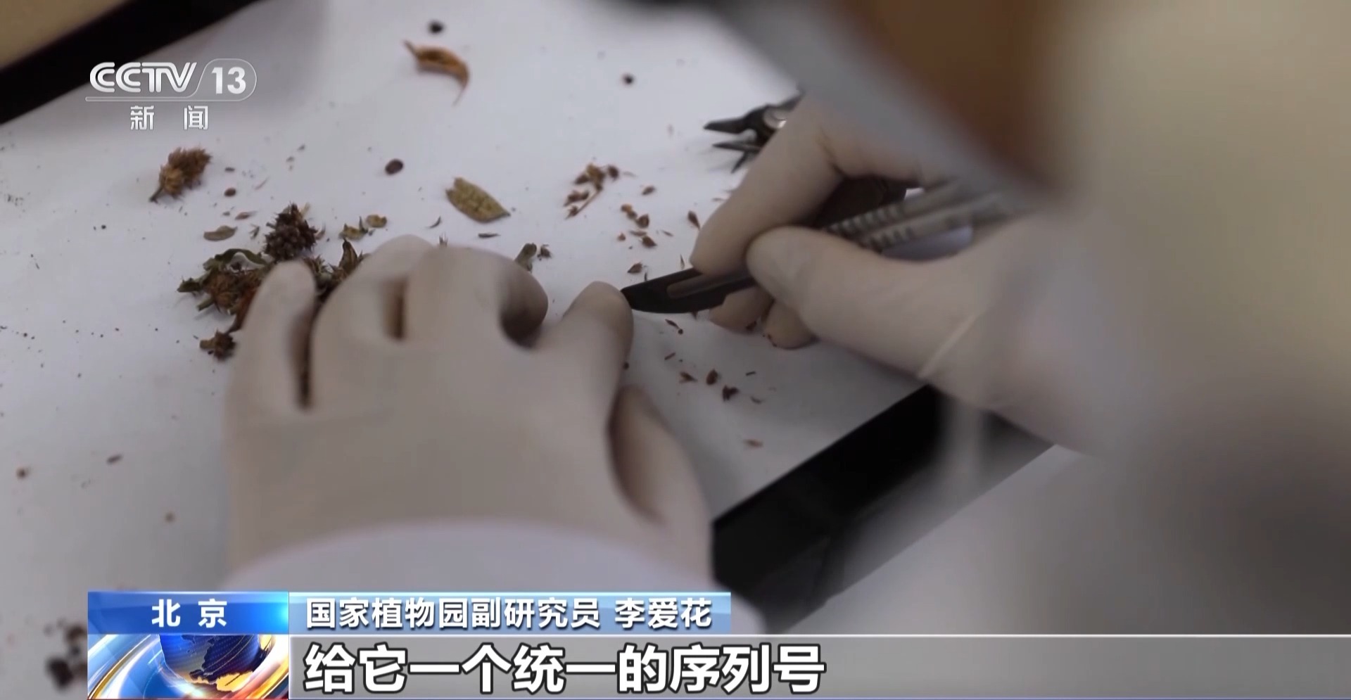 國(guó)家植物園副研究員 李愛(ài)花:種子從野外采集回來(lái)之后,我們要進(jìn)行簽收登記,包括它的品種標(biāo)本、分子材料、數(shù)據(jù)、圖像,給它一個(gè)統(tǒng)一的序列號(hào),然后進(jìn)行清理計(jì)數(shù)、質(zhì)量檢測(cè),包裝入庫(kù)之后,我們會(huì)定期檢測(cè)它的種子萌發(fā),看看它的種子活力。