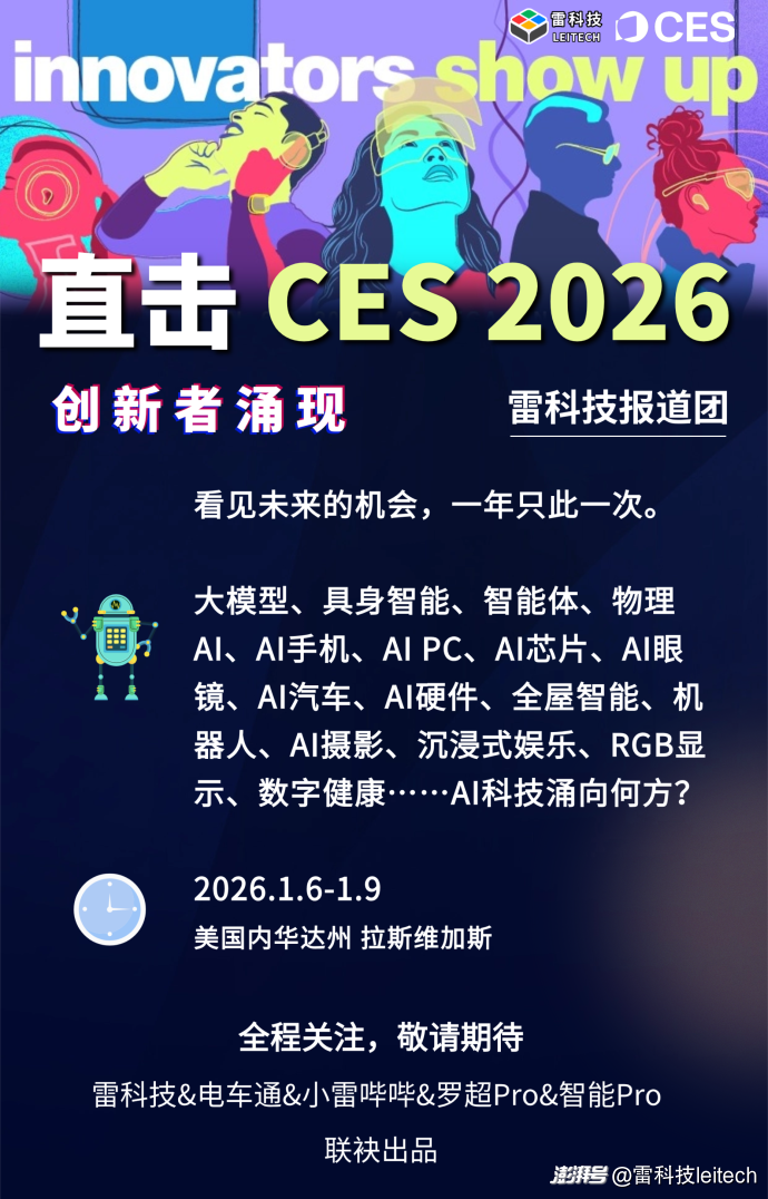 作為中國報(bào)道科技展會(huì)最悠久、最深入、最專業(yè)的新媒體,雷科技CES2026報(bào)道團(tuán)正在進(jìn)行緊張的前期籌備。屆時(shí)雷科技將派出史上最大規(guī)模的CES報(bào)道團(tuán),并由雷科技創(chuàng)始人兼總編輯羅超帶隊(duì),對(duì)CES2026進(jìn)行一線、專業(yè)和立體報(bào)道,敬請(qǐng)期待!