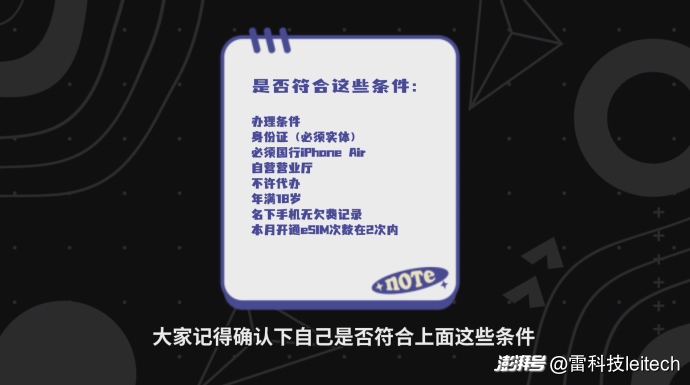 為了解答這一系列問題,在這項(xiàng)通知發(fā)出后的一個(gè)月內(nèi),咱們雷科技拿著剛發(fā)布的國行版iPhone Air,花了一整天時(shí)間,在廣州多家營業(yè)廳深度體驗(yàn)了完整的國內(nèi)三大運(yùn)營商eSIM開卡流程。