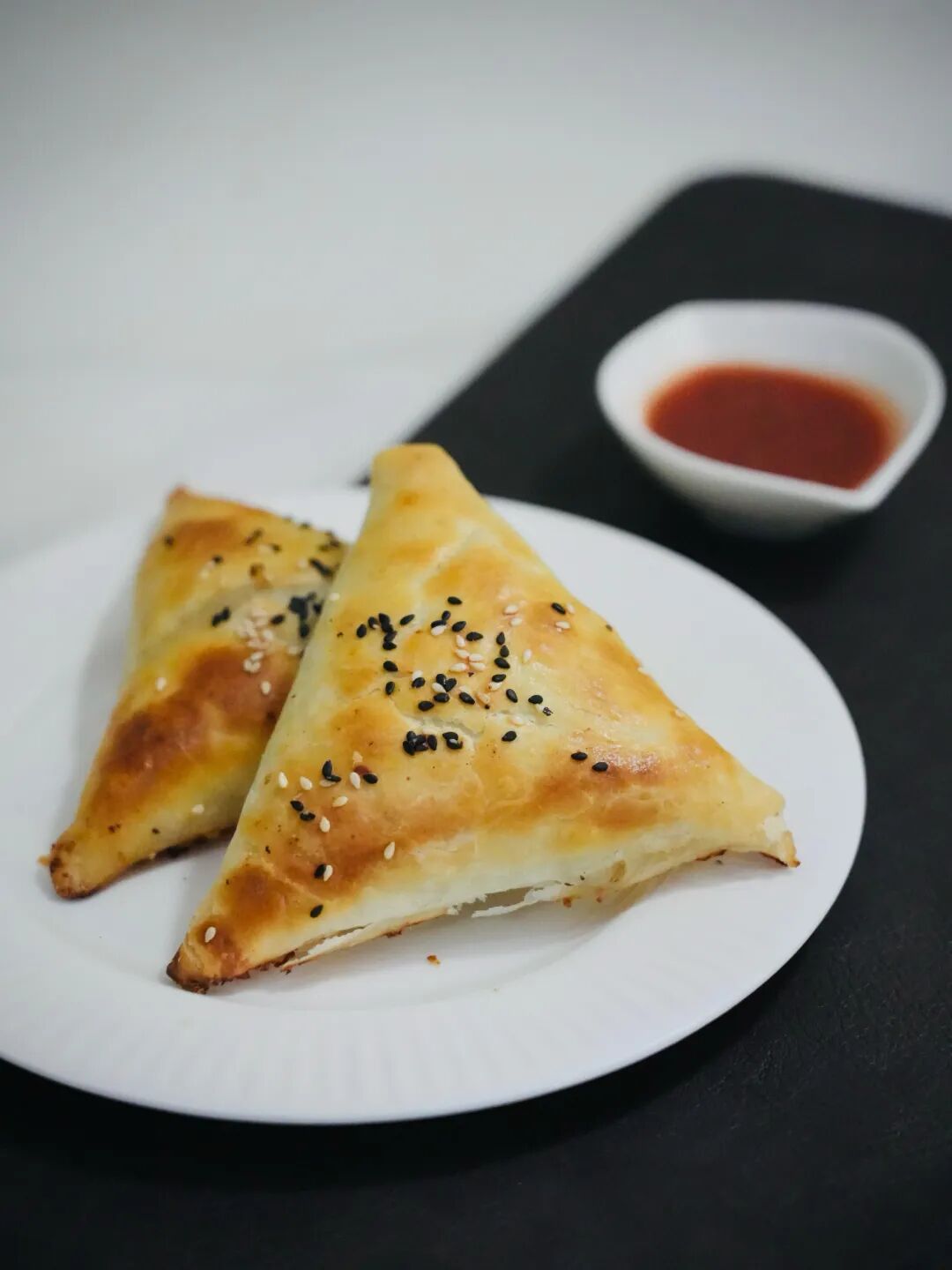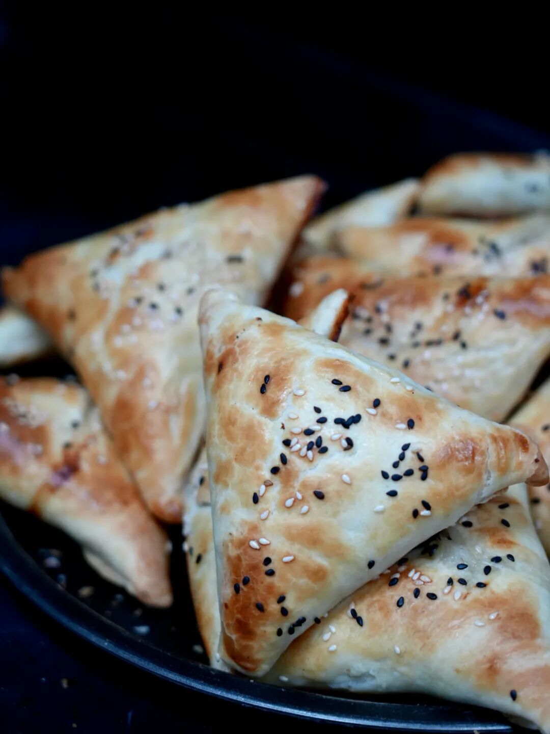 嘗一份三角形的烤包子,老板古扎麗特意叮囑我要趁熱吃。