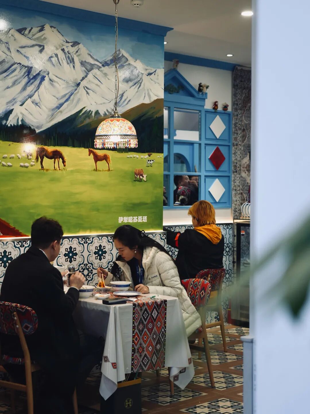 店里用了很多新疆老房子的元素。