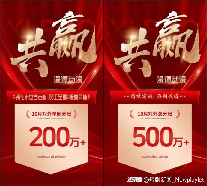 11月中旬,漫譚動(dòng)漫CEO吳洋洋的一條朋友圈,配著兩張亮眼海報(bào)刷屏行業(yè)。一張是公司10月對(duì)外總分賬突破500萬的捷報(bào),另一張則是旗下作品《我在末世當(dāng)老板,員工全是S級(jí)變異體》單月分賬超200萬的戰(zhàn)績。