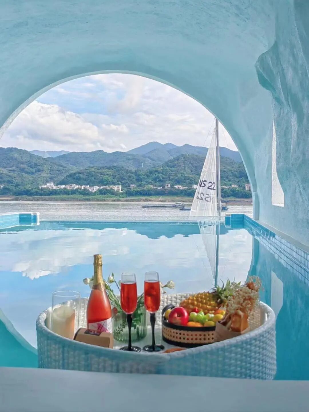 “我們的美學(xué)呈現(xiàn)不同于傳統(tǒng)的鄉(xiāng)村民宿,而是融入愛琴海風(fēng)格,從建筑外墻、室內(nèi)擺件,再到房間設(shè)計(jì)和特色餐飲,實(shí)現(xiàn)嶺南特色與異域風(fēng)情的融合?!蔽鹘{(lán)岸民宿副店長羅瑩說。