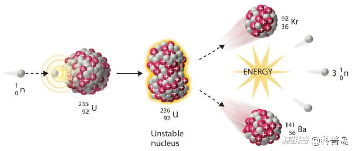 引起核裂變的“導(dǎo)火索”是一個(gè)外界中子。在鈾-235中有奇數(shù)個(gè)中子,所以它更“歡迎”新中子的到來,與落單的中子配對(duì)。因此,鈾-235與一個(gè)新中子生成的鈾-236在很高的激發(fā)態(tài)上,很容易裂變成兩半,瞬間釋放出巨大能量。