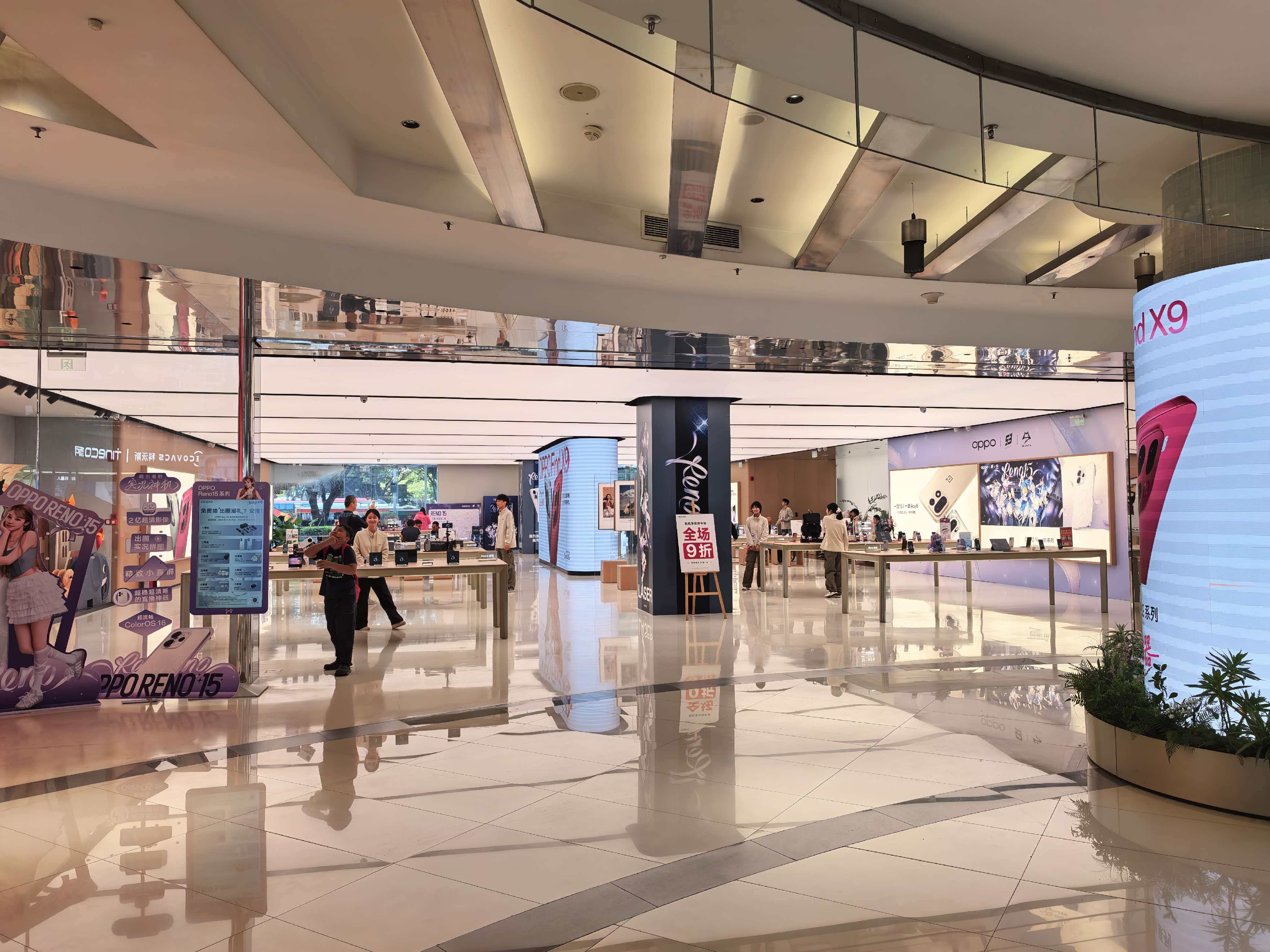 正佳廣場店是OPPO在廣州開設的第一個旗艦級門店,于2023年開業(yè),今年重新裝修了一次,相比起最初開業(yè)時更時尚、空間感更強一些。