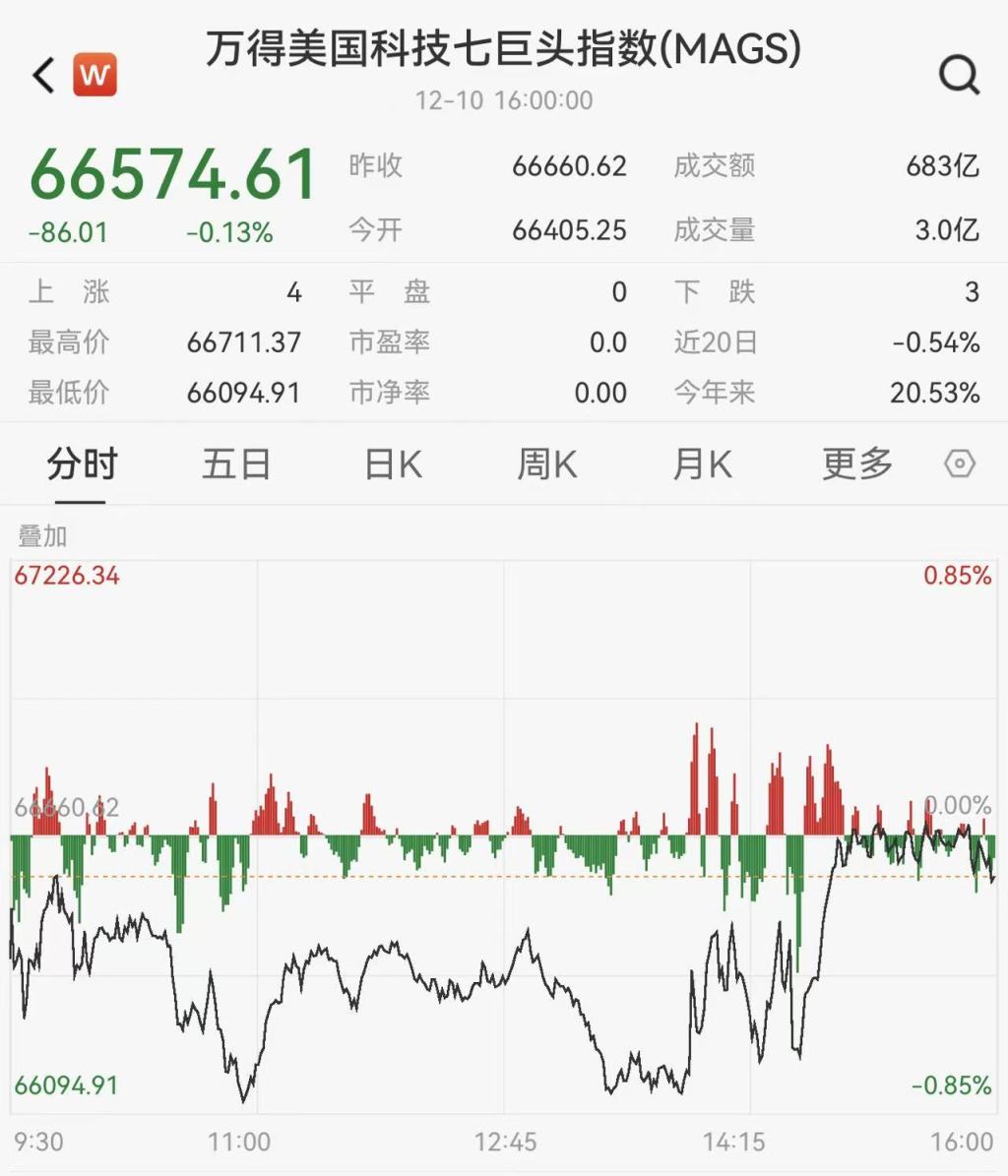 Wind數(shù)據(jù)顯示,當(dāng)?shù)貢r(shí)間12月10日,美股三大股指全部上漲。道指漲1.05%,標(biāo)普500指數(shù)漲0.67%,納指漲0.33%。
