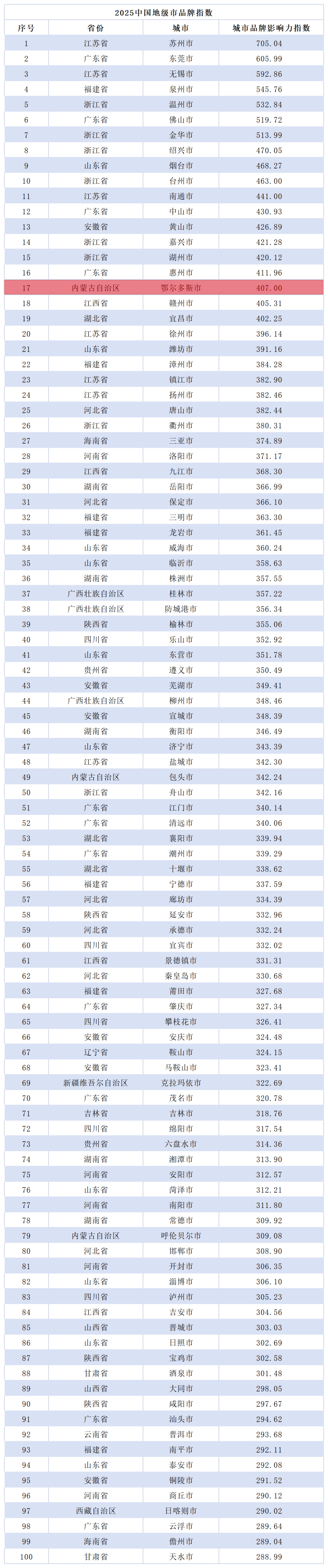 這項全國城市排名,鄂爾多斯第17位!