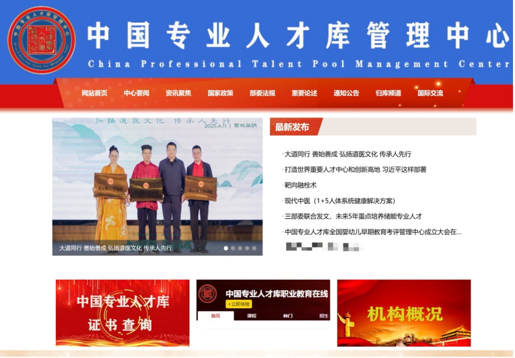 上述“中國專業(yè)人才庫管理中心”網(wǎng)站設(shè)有多個欄目板塊。其中,首頁最新一條、顯示發(fā)布于今年4月13日的消息稱,“2025年4月11日,由中國國際經(jīng)濟技術(shù)合作促進會健康科技工作委員會與中總絕技絕活(北京)文化傳播有限公司、中國專業(yè)人才庫管理中心聯(lián)合主辦,中紅集團、地寶集團承辦的‘道醫(yī)文化傳承人’項目啟動會在西雙版納隆重舉行,來自全國各地的近300名專家學者參加了這一盛會。”