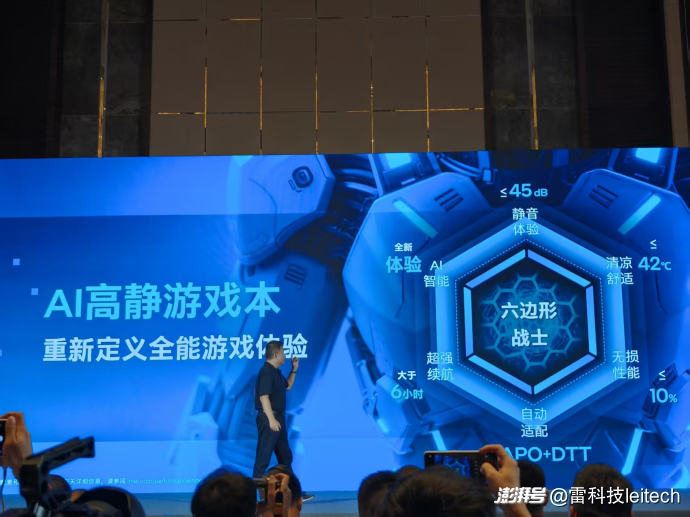最后來聊聊大家普遍關(guān)注的游戲本,今年游戲本與往年最大的不同,在于英特爾首次提出了“AI高靜本”的設(shè)計(jì)理念。簡(jiǎn)單來說,就是在保持高性能釋放的前提下,通過AI控制風(fēng)扇曲線、動(dòng)態(tài)電壓管理與實(shí)時(shí)預(yù)測(cè)溫度,讓整機(jī)在高負(fù)載時(shí)依舊可以保持相對(duì)安靜,不再讓玩家在使用時(shí)面對(duì)如同“直升機(jī)起飛”般的噪音。