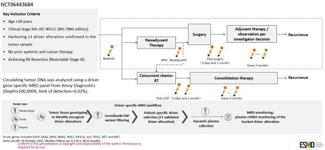 在 2025 年 ESMO Asia 期間,上海市胸科醫(yī)院李子明教授于胸部腫瘤 Mini Oral 專場(chǎng)公布了該研究的首次分析結(jié)果。作為國(guó)內(nèi)多中心聯(lián)合完成的前瞻性探索性工作,DRIVE 的階段性數(shù)據(jù)在國(guó)際學(xué)術(shù)平臺(tái)集中呈現(xiàn)了中國(guó)團(tuán)隊(duì)在“聚焦驅(qū)動(dòng)突變 MRD 監(jiān)測(cè)”方面的實(shí)踐經(jīng)驗(yàn)與臨床價(jià)值,并引發(fā)了與會(huì)同行對(duì)其在圍手術(shù)期管理與隨訪策略中應(yīng)用前景的進(jìn)一步討論。