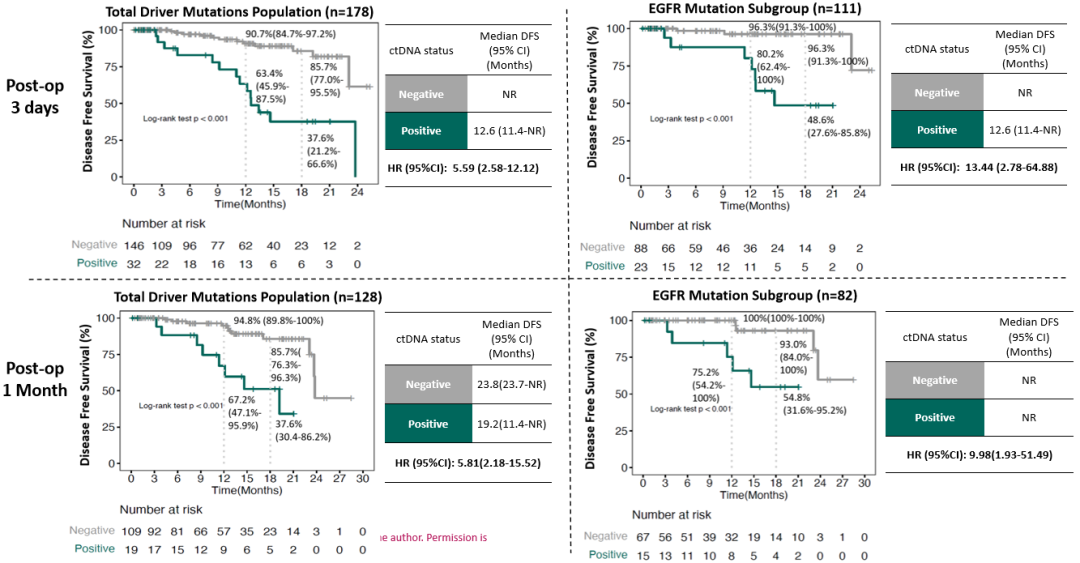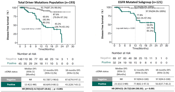 圖4. 術(shù)后驅(qū)動(dòng)基因突變ctDNA MRD狀態(tài)與患者DFS相關(guān)性