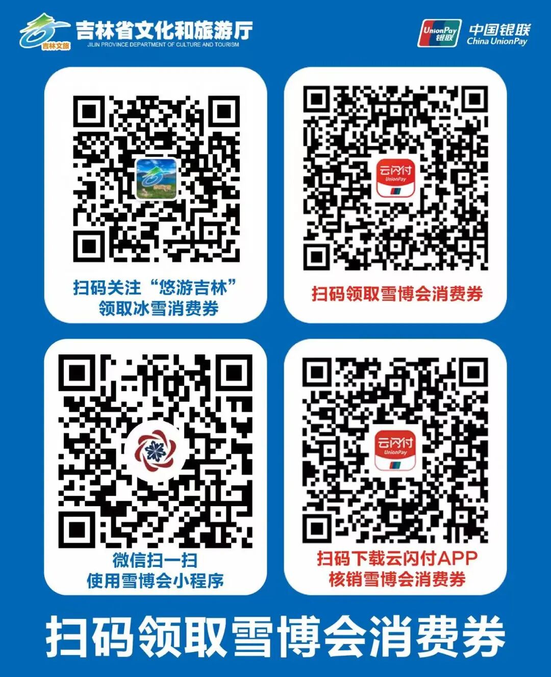 這是本屆雪博會最實在的福利:到雪博會現(xiàn)場使用云閃付APP掃碼領取消費券購買冰雪裝備(雪板等)及展會產品等可享6.5折優(yōu)惠,每單最高減免350元。雪博會期間每人可領5次,可以一天內用完,也可在會期內用完。