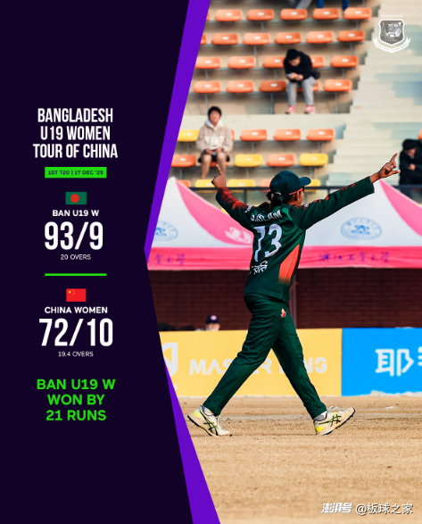 孟加拉U19女子板球國(guó)家隊(duì)首場(chǎng)比賽以21分險(xiǎn)勝中國(guó)隊(duì)