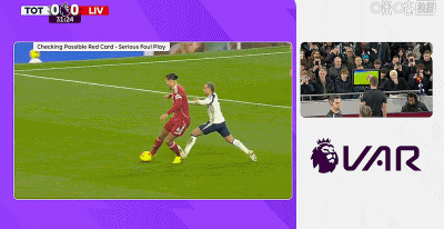 第30分鐘,哈維·西蒙斯逼搶蹬踏范戴克小腿,VAR介入后裁判直接紅牌將哈維·西蒙斯罰下。