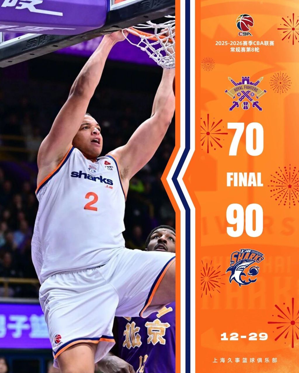 洛夫頓18+10+5,上海久事20分大勝北京北控