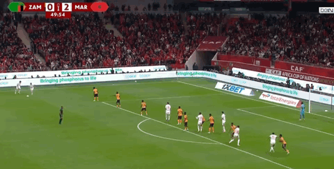 上半場第9分鐘,摩洛哥右側(cè)開出戰(zhàn)術(shù)角球,奧納西傳中到門前,卡埃比門前扛人魚躍沖頂破門,幫助摩洛哥首開記錄。