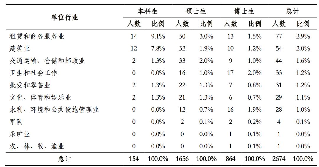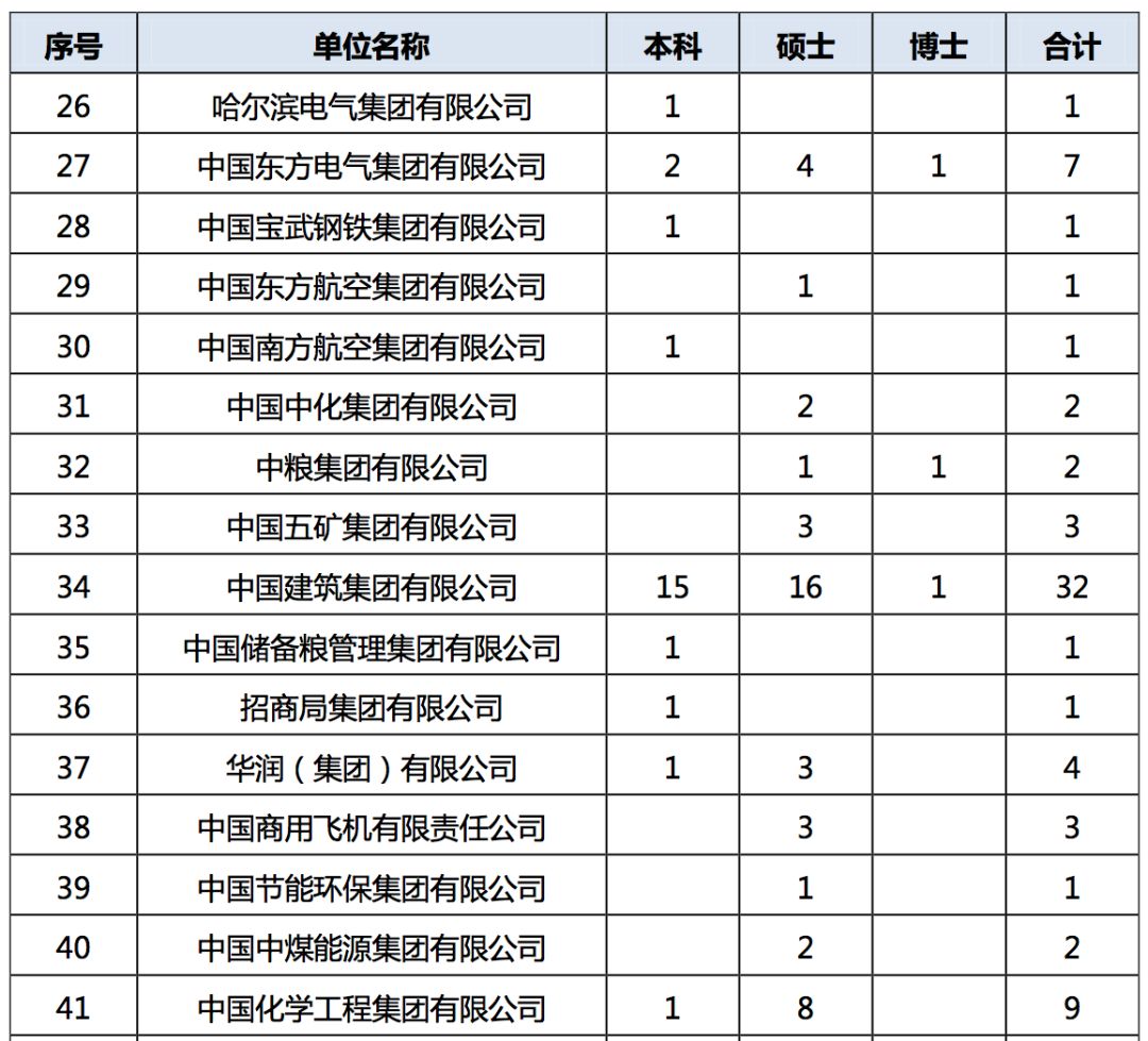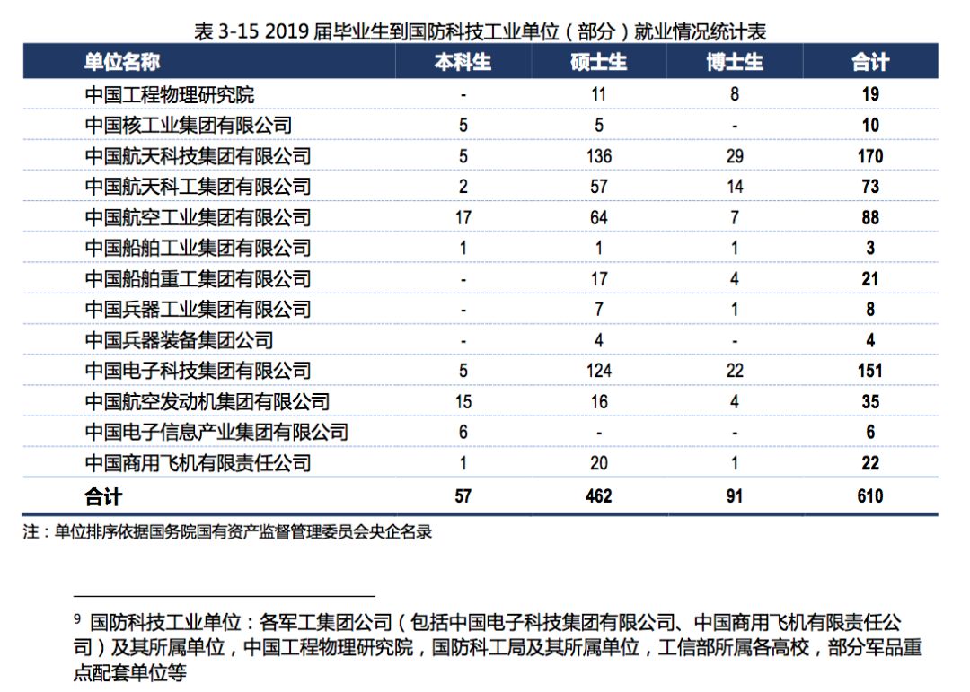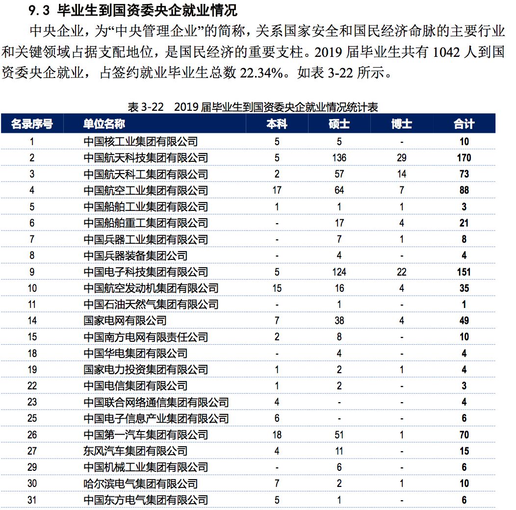 2019 年到國(guó)資委直屬大型央企、重要科研機(jī)構(gòu)及部隊(duì)就業(yè)的人數(shù)為 795 人, 占簽約就業(yè)人數(shù)的 18.40%。其中本科生 149 人、碩士生 566 人、博士生 80 人。