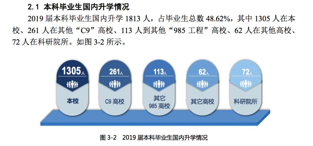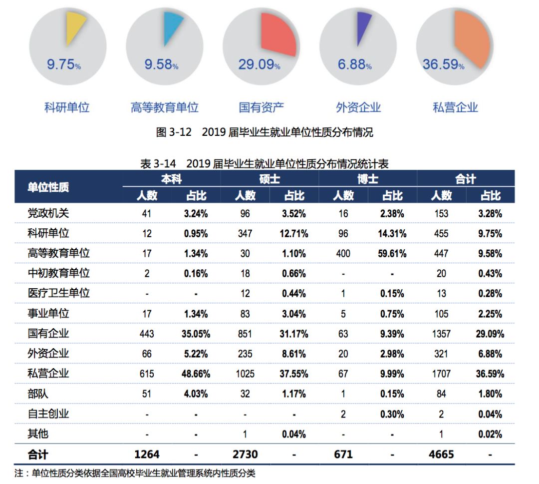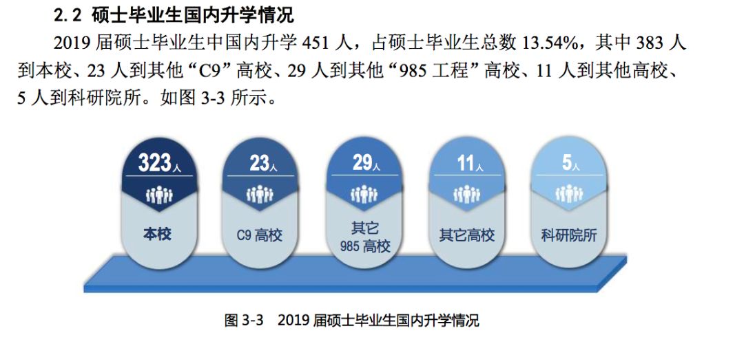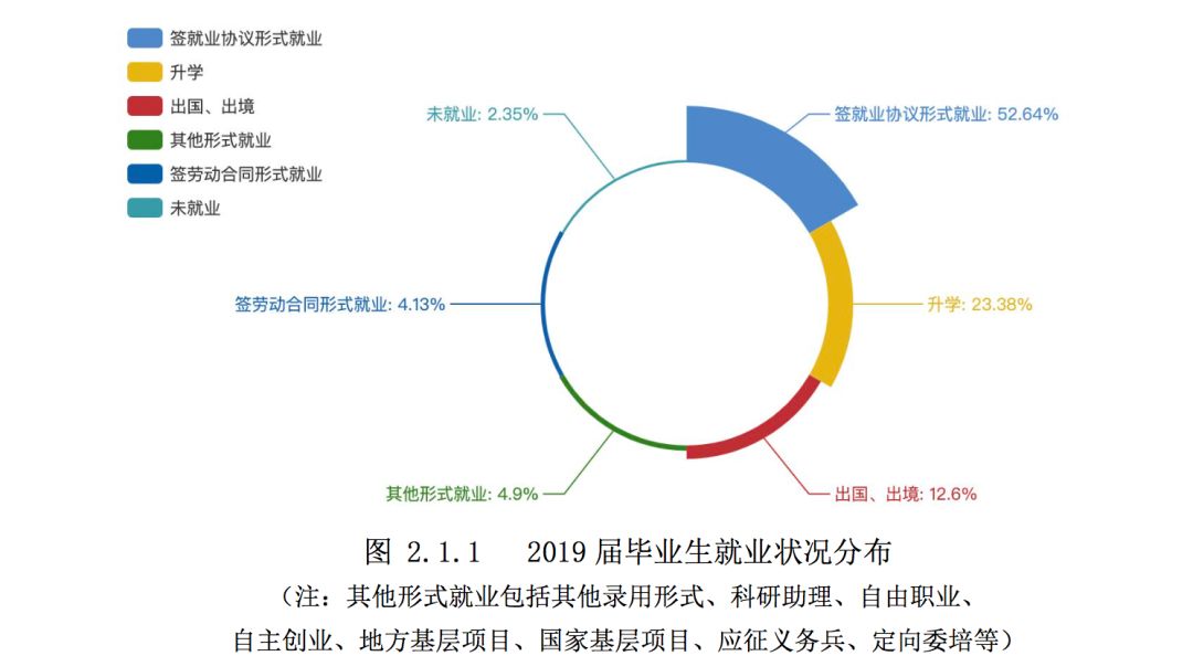 截至 2019 年 11 月 20 日,有 2793 人在境內(nèi)升學(xué),1505 人出國(guó)(境)深造, 7369 人實(shí)際就業(yè),281 人未就業(yè)。