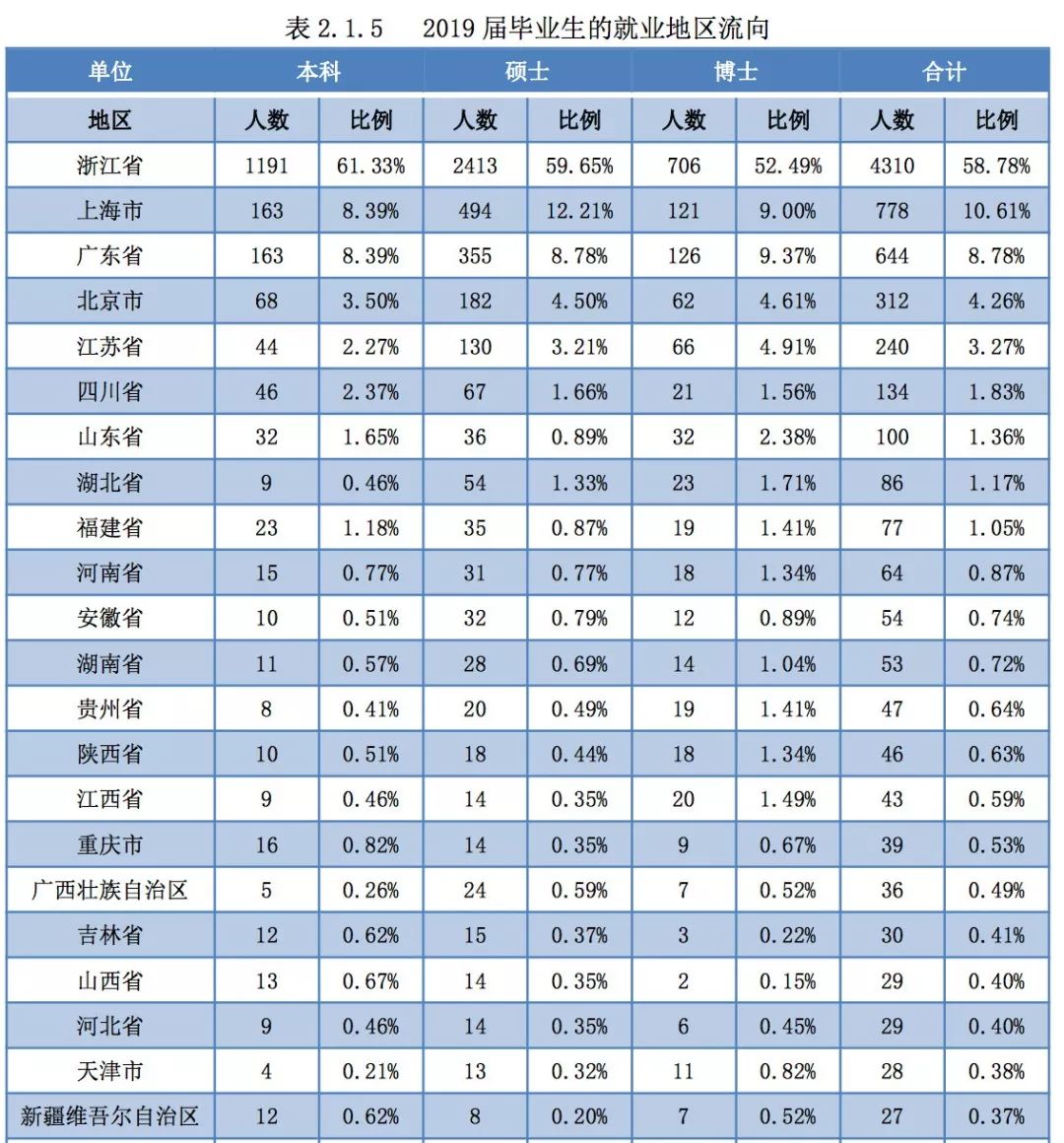 浙江大學(xué)2019年屆畢業(yè)生就業(yè)情況