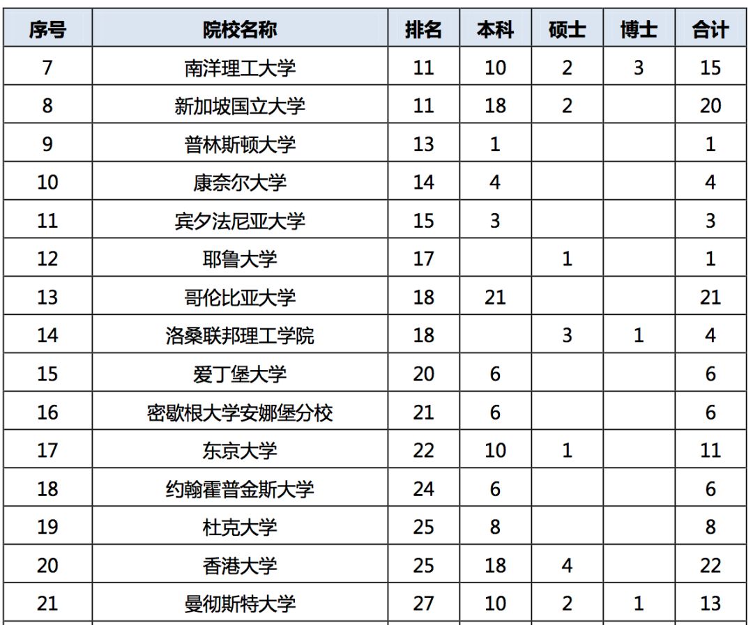 頂尖名校畢業(yè)生人數(shù)變化較小