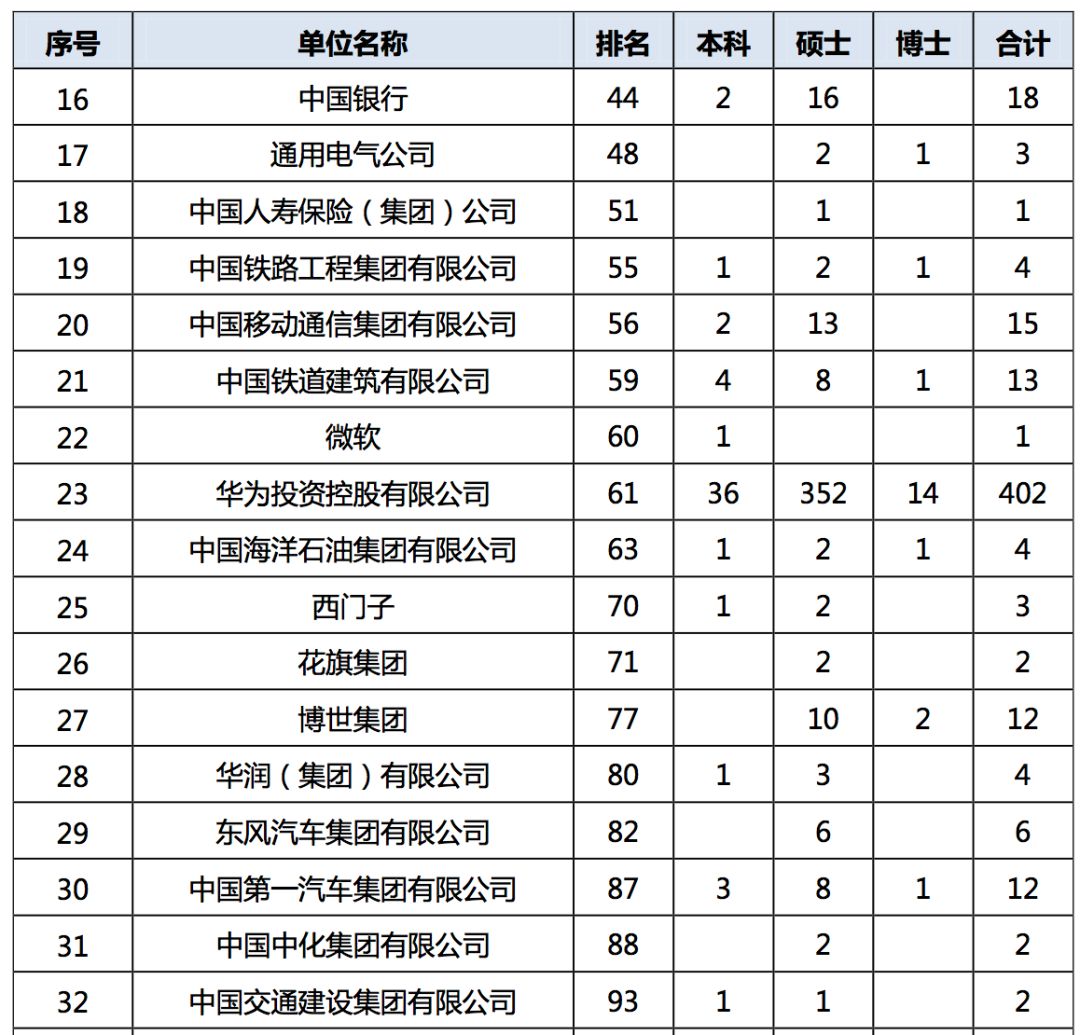 各大高校畢業(yè)生中簽約較多的單位主要包括各大知名互聯(lián)網(wǎng)公司、國(guó)家重點(diǎn)央企等。今年華為依然成為接受6所C9高校畢業(yè)生最多的企業(yè),6所頂尖高校進(jìn)入華為的畢業(yè)生分別有:清華大學(xué)(189人)、浙江大學(xué)(550人)、上海交通大學(xué)(336人)、南京大學(xué)(274人)、西安交通大學(xué)(402人)和哈爾濱工業(yè)大學(xué)(472人)。