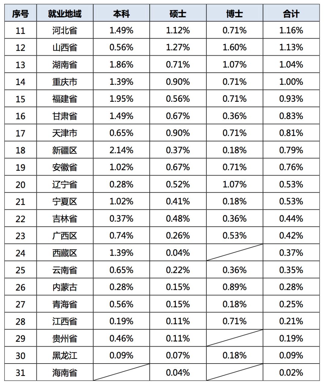 大多數(shù)畢業(yè)生流向東部發(fā)達(dá)地區(qū)