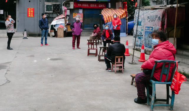 社區(qū)居民之前都是坐在小板凳排隊,等肖瀟送貨