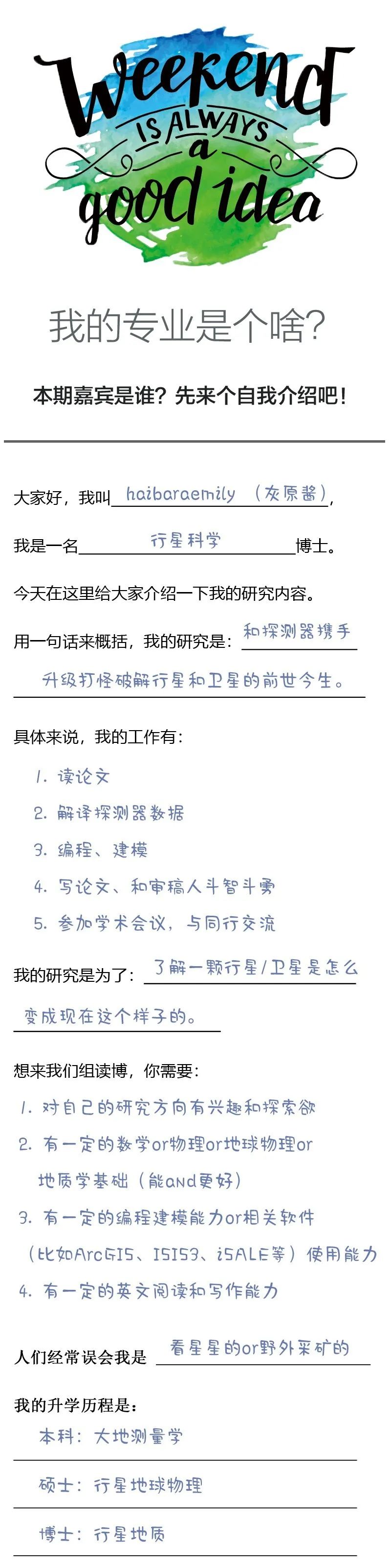怎樣才能成為一名上知天文、中知大氣、下知地質(zhì)、更往下還知內(nèi)部結(jié)構(gòu)的全能型的行星科學(xué)家呢?讓我們一起看看行星科學(xué)博士haibaraemily的經(jīng)歷吧!