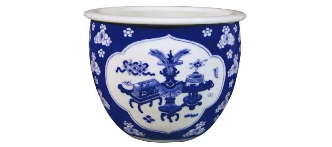 仿清康熙·青花冰梅開(kāi)光博古紋案缸