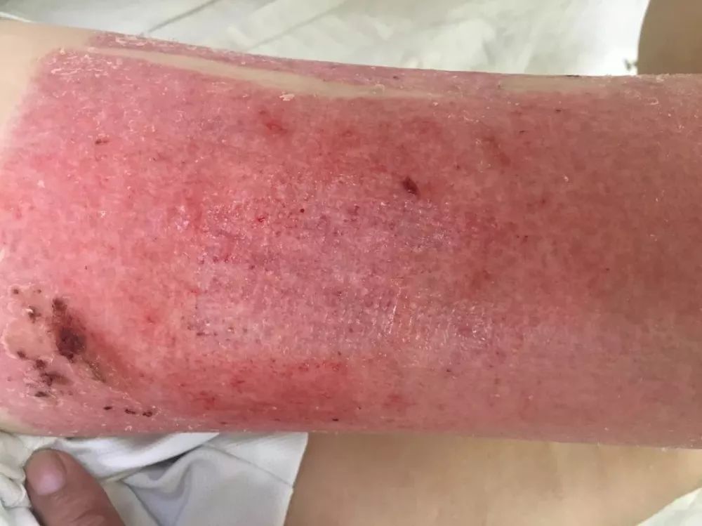 這是傷后1個(gè)月的創(chuàng)面,剛燙傷時(shí),它的樣子很難分辨