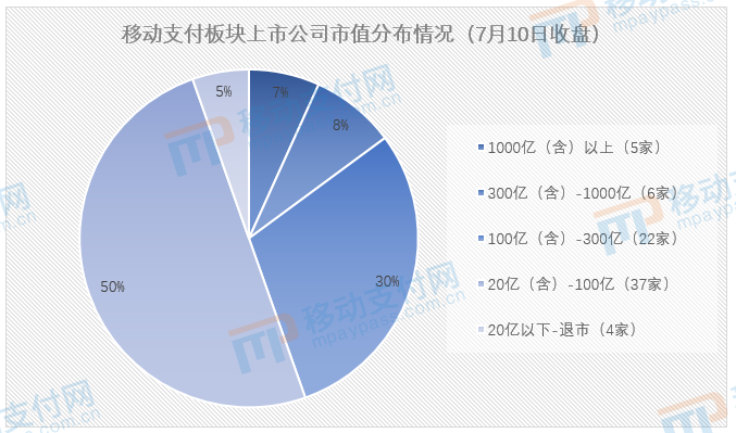 市值方面(不包含帶*,下同),過半有移動支付概念上市企業(yè)均集中于20億(含)-100億這一區(qū)間。