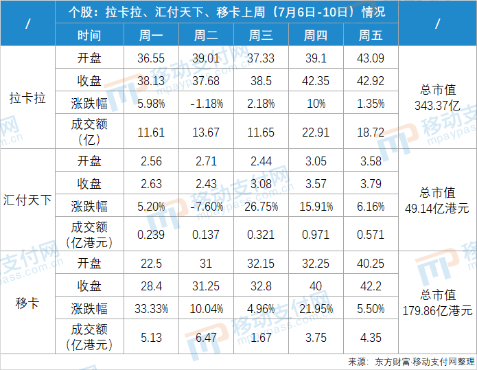 個(gè)股觀察:拉卡拉、匯付、移卡也瘋狂