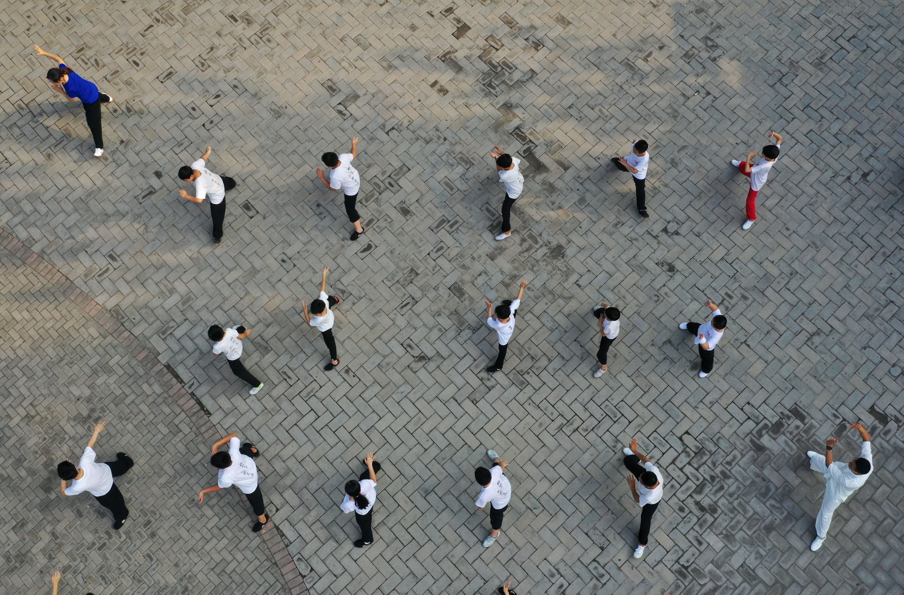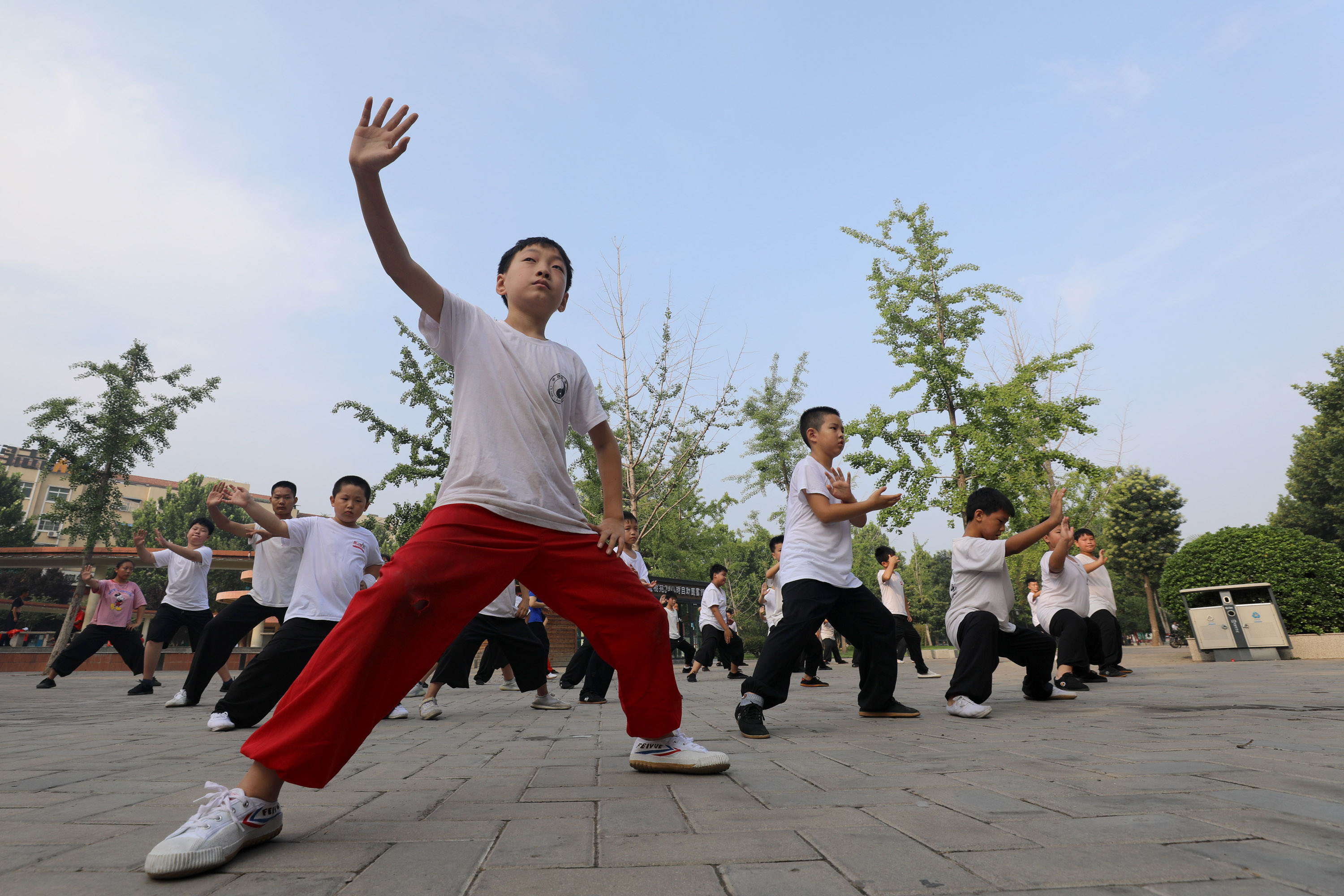 7月28日,河南省焦作市溫縣陳家溝一家武館的學(xué)員們在習(xí)練太極拳。