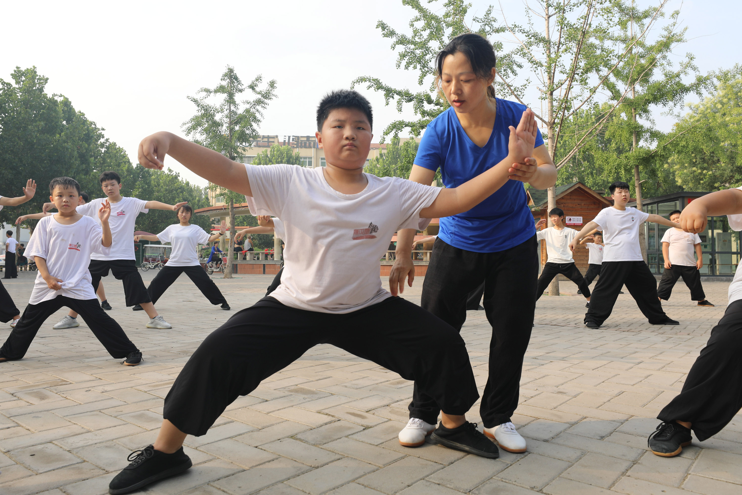 暑假期間,太極拳發(fā)源地——河南省溫縣百余個太極拳館、培訓(xùn)班吸引國內(nèi)眾多大學(xué)生、中小學(xué)生前來習(xí)武健身,傳承太極文化,在剛?cè)嵯酀倪\動中“武”出精彩暑假。(徐宏星 攝)